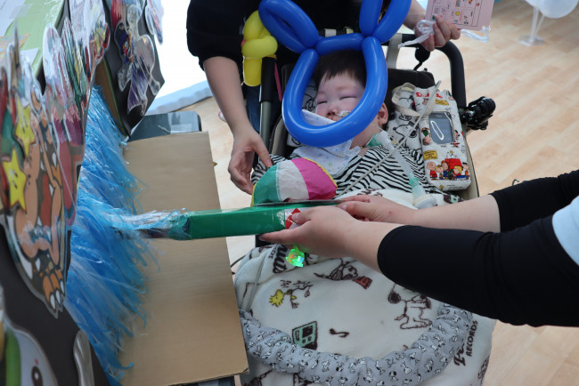 乗り物に乗って空の旅、わにわにパニック、バルーン、ペン立て制作、デジリハ、輪投げ、音楽遊び、スヌーズレン、シャボン玉などなど、それぞれの部署がこども達が楽しめる活動を考えました。